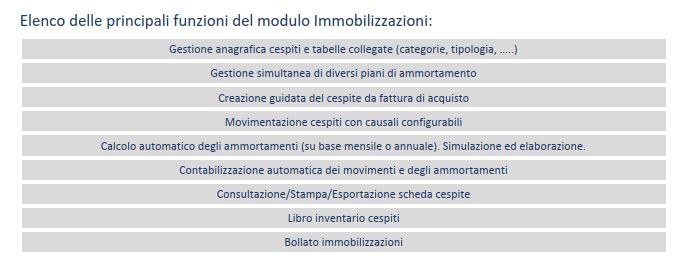 Ogni cespite può essere censito e categorizzato già in fase di registrazione della fattura di acquisto ed è possibile ottenere gli ammortamenti sulla base di differenti piani di ammortamento sia su base annuale che su base mensile.